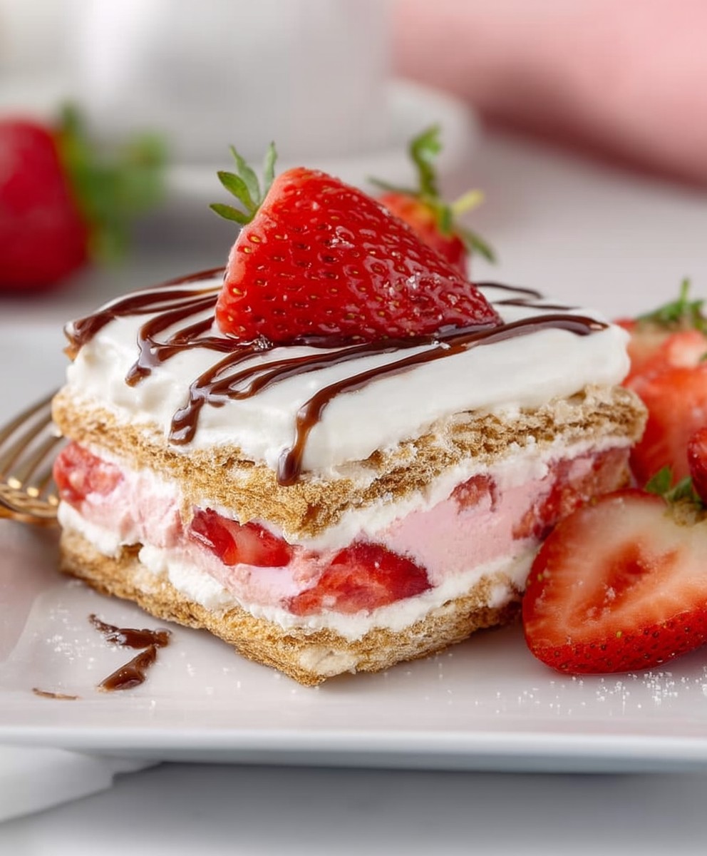 Frühlingshafter Erdbeer-Eclair-Kuchen – ohne Backen und köstlich!