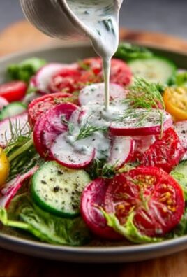 Nun kommen wir zum Herzstück, das diesen Frühlingssalat: leicht und erfrischend mit Radieschen und Joghurtdressing so besonders macht: das Joghurtdressing. Vergessen Sie schwere, öllastige Dressings. Dieses hier ist leicht, cremig und verleiht dem Salat eine angenehme Frische. Es umhüllt jede Zutat sanft, ohne sie zu dominieren, und schafft eine harmonische Verbindung zwischen der Schärfe der Radieschen und der Zartheit des Salats. Es ist quasi der Dirigent, der alle Aromen zu einer wunderschönen Symphonie vereint.