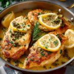 Nehmen Sie die Pfanne vom Herd und lassen Sie das Hähnchen einige Minuten ruhen, damit sich die Säfte verteilen können. Schmecken Sie die Sauce bei Bedarf mit zusätzlichem Salz und Pfeffer ab. Vor dem Servieren streuen Sie reichlich frische, gehackte Petersilie darüber, um dem Gericht eine leuchtende Farbe und einen frischen Kräutergeschmack zu verleihen. Ein Hauch Cayennepfeffer kann jetzt für eine leichte Schärfe untergemischt werden. Servieren Sie dieses aromatische Hähnchen mit Zitrone und Knoblauch direkt aus der Pfanne, idealerweise begleitet von cremiger Polenta, lockerem Reis oder frisch gebackenem Brot, das die köstliche Sauce aufsaugen kann.